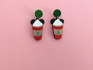 Christmas Coffee Glitter Mouse Ears Drop Earrings