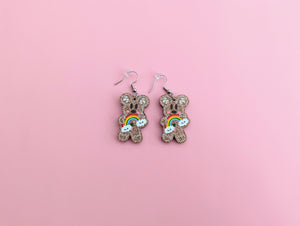 - Christmas Glitter Gingerbread Man Rainbow Drop Earrings