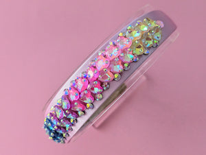 Light Pink/Lilac Rainbow Deluxe Glass Crystal Satin Headband