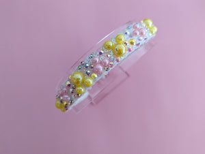 Pink & Yellow Hidden Mickey Headband on a white iridescent base using high using quality g resin rhinestones/crystals and embellisments