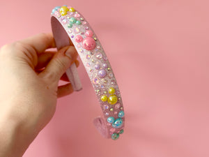 Spring Rainbow Light Pink Holographic Mouse Headband on a holographic base using high using quality glass rhinestones/crystals
