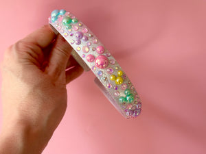 Spring Rainbow Silver Holographic Mouse Headband on a holographic base using high using quality glass rhinestones/crystals