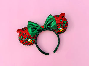 Deluxe Christmas Crystal Mouse Ears with Antlers bedazzled in glassrhinestones on a sequin base