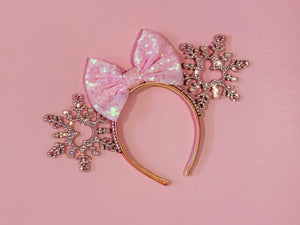 Glass Rhinestone Pink Snowflake Christmas Ears