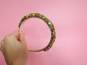 Golden bronde deluxe crystal Headband on a soft dusky golden satin base using high using quality glass rhinestones/crystals in a crown style.