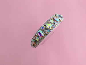 Crystal Head Band On a very pale pink satin base embellished with high quality glass and resin rhinestones/crystals.