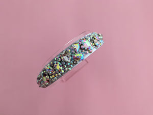 Glass Slipper Crystal Headband on a light silver/grey satin base using high quality resin & glass crystals/rhinestones.