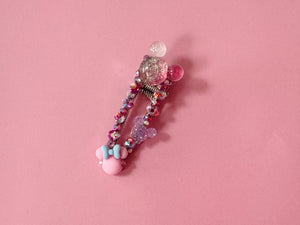 A sparkly clip adorned with glass crystals and mouse embellishments.