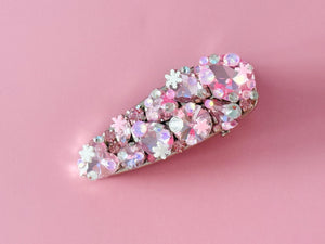 Deluxe Snowflake Glass Crystal Hair Clip -Medium Pink