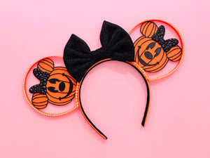 Pumpkin Orange & Black Rhinestone 3D Printed Crystal Mouse Ears