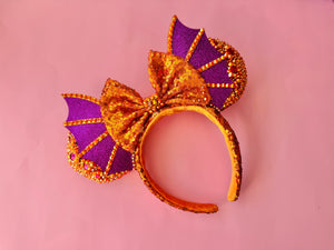 Bat Crazy Crystal Halloween Mouse Ears - Orange/Fuchsia