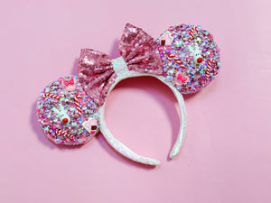 Deluxe Christmas Crystal Mouse Ears bedazzled in glass & resin rhinestones on a sequin base