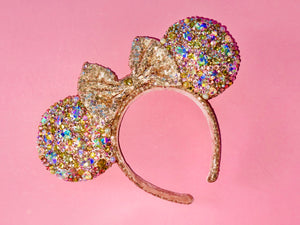 Champagne Fizz Crystal Mouse Ears bedazzled in glass & high quality resin rhinestones on a champagne sequin base