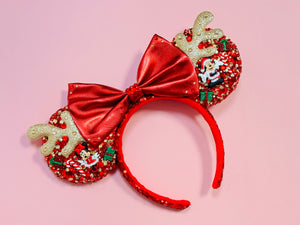 Deluxe Christmas Crystal Mouse Ears with Antlers bedazzled in glass & resin rhinestones on a sequin base