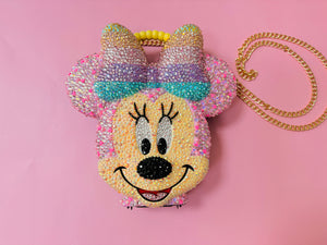 Rhinestoned Pink Mouse With Rainbow Bow Crossbody Bag / Case