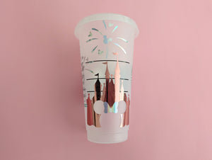 Castle Fireworks & Balloon Cold Cup - rose pink and metallic