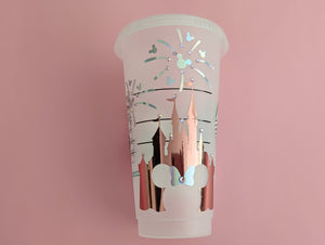 Castle Fireworks & Balloon Cold Cup in Rose Pink With Rhinestones - rose pink and metallic colour with hand placed glass crystals/rhinestone detail.