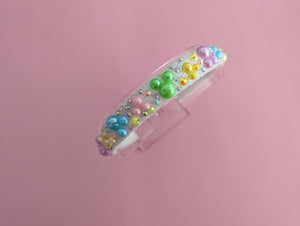 Pastel Rainbow Hidden Mickey Headband on a white iridescent base using high using quality g resin rhinestones/crystals and embellishments