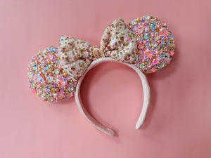 Crystal Mouse Ears bedazzled high quality glass rhinestones on a pink base